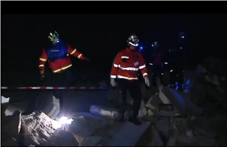 Lo primero es saludarles y establecer una zonifiación de seguridad que no les impida traspasar. Reunión con las autoridades locales e inicio del rastreo en superficie con bomberos y perros. Mientras esto ocurre realizo una primera comparecencia ante los Medios. Hasta 6 víctimas son rescatadas entre las 20 horas y las 2 de las mañana ( 2 de ellas muertas).