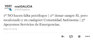 Las Redes fueron muy eficaces para favorecer la solidaridad ciudadana. A través de ella se pedían donaciones de sangre o psicólogos. Era fácil localizar a través de ellas donde se ofrecía la información a los familiares o los lugares de donación, no sólo en Galicia, sino en otros sitios de España. Los tuiteros se volcaban en masa a hacer RT pero, curiosamente, cuando se pedía dejar de acudir a donar sangre o no mandar más psicólogos no tenía el mismo impacto. Da la sensación que apetece más una acción que la otra.