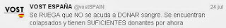 supone que la vida media de un tweet se sitúe en los 5 minutos. Cuando un usuario de esta red es conocedor de la tragedia, y acude a la búsqueda de información, ésta puede llevar abierta bastante tiempo. Un ejemplo claro fue el accidente del tren Alvia en Santiago de Compostela donde decenas de tuiteros, en su afán de colaborar, repicaban de forma constante la necesidad de donar sangre cuando las autoridades hacía tiempo que habían dejado de solicitarla.
